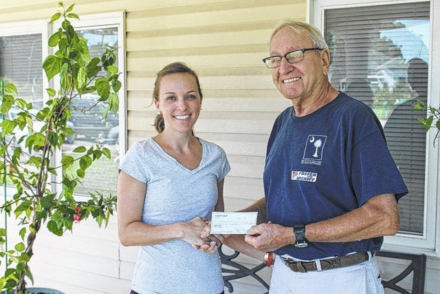 The Silverstreet Lutheran Youth Group hosted a 5K Color Run on Sept. 17 to benefit the Ruth S. Pugh Foundation, which supports individuals with disabilities and special needs in Newberry County and works with the Newberry DSN Board. Lindsay Piersol, left, youth leader from Silverstreet Lutheran Church, presented a check to Harold Folk, chairman of the Ruth S. Pugh Foundation.