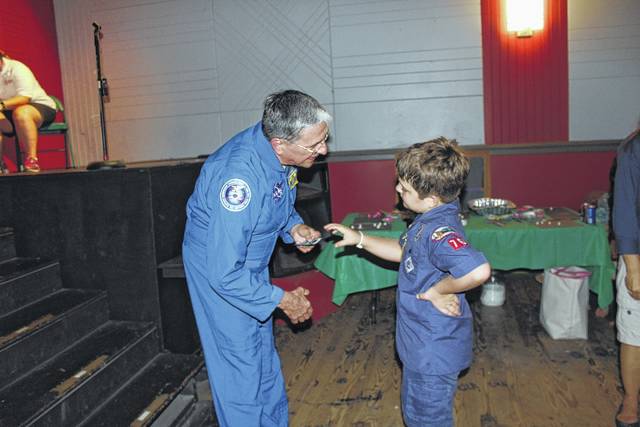 NEWBERRY — A number of Boy Scouts and Girl Scouts took part in badge sessions during Eclipsefest where they could receive a customized eclipse badge presented by astronaut Don Thomas during a ceremony held Saturday.