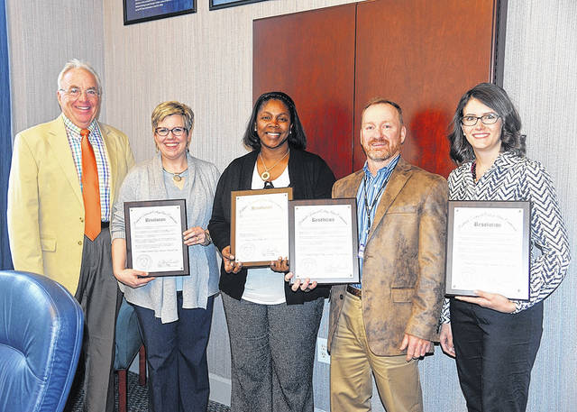At its meeting on April 17, the PTC Area Commission recognized the PTC Innovation Team of the Year. Pictured from left: Area Commission Chair H. George Piersol II, Jennifer Lopes, Coronicca Oliver, Tony Amos and Laura Boone. Not pictured: Rebecca Soppe and David Rosenbaum.