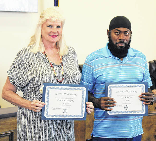 • Council recognized the following employees for their years of service to the county: Keith Suber, Public Works – 15 years; Michael Stribble, Sheriff’s Office – 20 years; Shannon Murphy, Auditor’s Office – 25 years.