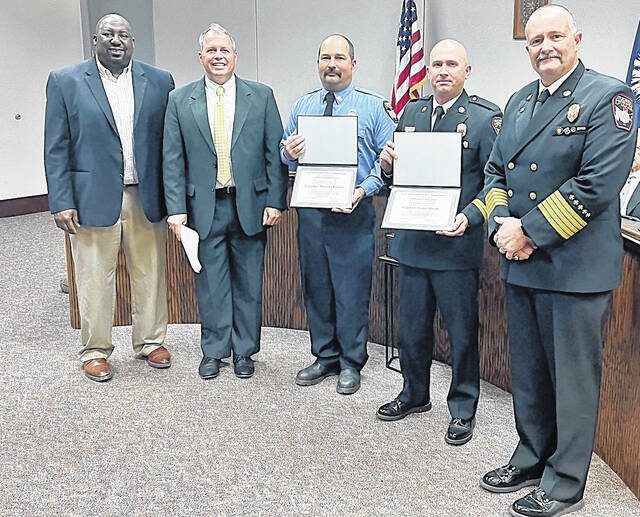 Fire Chief Keith Minick said these gentlemen acted with a lot of courage and compassion during this call, performing their medical first aid and CPR until EMS arrived. Minick said they were proud of their hard work and dedication of what they do, not only to fight fires, but also in the area of mutual aid to help the city’s citizens.