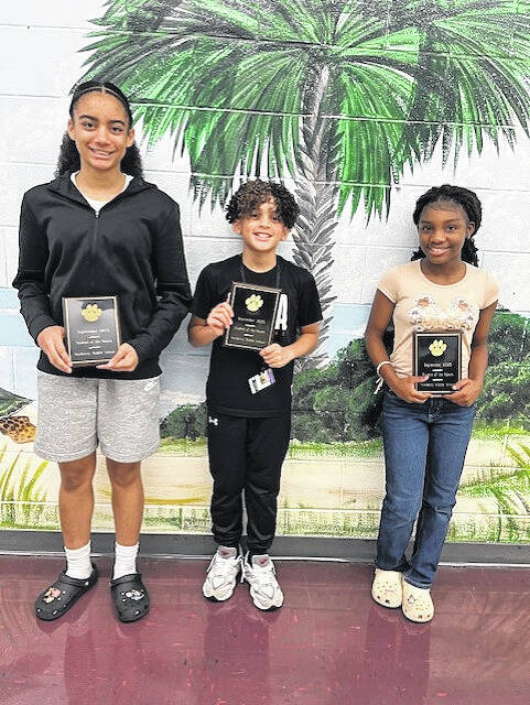 The following students were named Newberry Middle School’s September Students of the Month: From left to right: Brielle Mingo, Myles Mingo and Zaya Coleman.