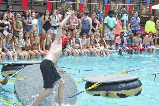 Michael Johnston of Newberry High School in the lily pad relay as part of the “Water Bonanza.”
