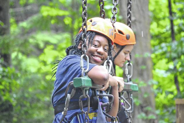 Ja’Nyia Gary, a sophomore at Newberry High School, and Rebekah Clevenger enjoy the giant swing.