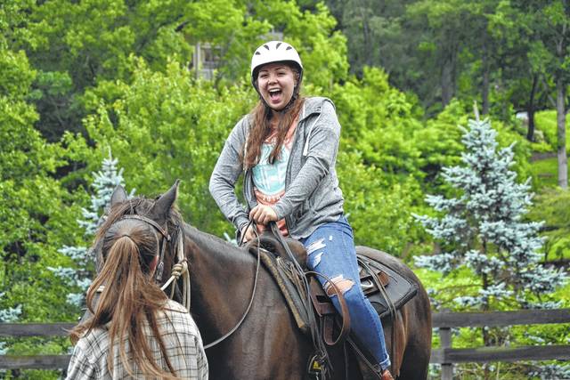 Marie Marlow, a graduate of Newberry High School, pets one of the horses the campers got to ride.