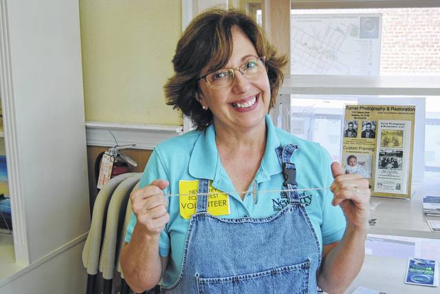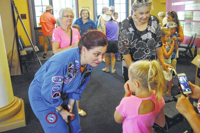 Lori Bradner, NASA educator, talks to local youths about the rockets they made.