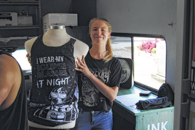 Kathy Anderson and Emily Burgess, of Newberry, walking downtown for the EclipseFest.