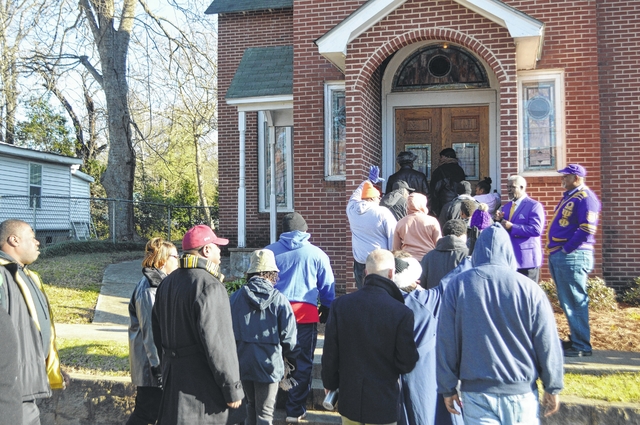 Marchers file into Millers Chapel AME Church at the conclusion of the walk.