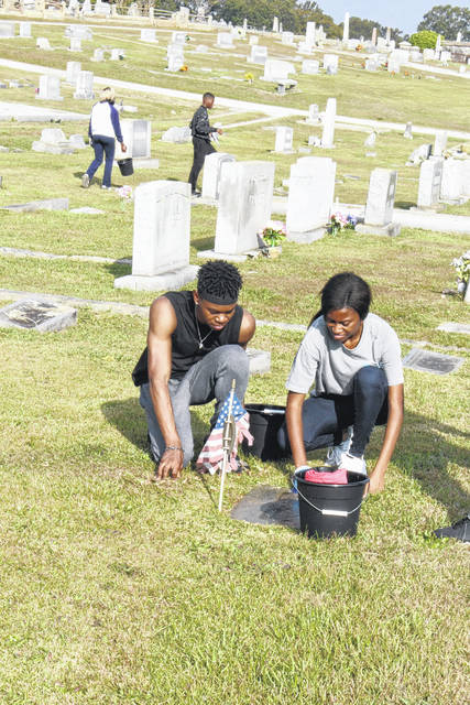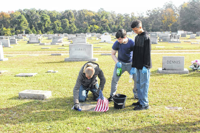 NEWBERRY — The Newberry High School Junior Reserve Officers’ Training Corps (JROTC) set out to Rosemont Cemetery last Saturday to clean the headstones of veterans, and a few non-veterans, as part of their community service project.