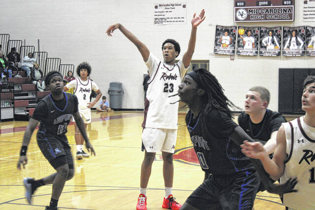 PROSPERITY, S.C. — The Rebels varsity boys’ basketball team got off to a hot start in their home opener but couldn’t keep their momentum. Mid-Carolina(2-2) falls 57-45 to Airport(1-2) in their home opener on Tuesday, Dec.2nd.